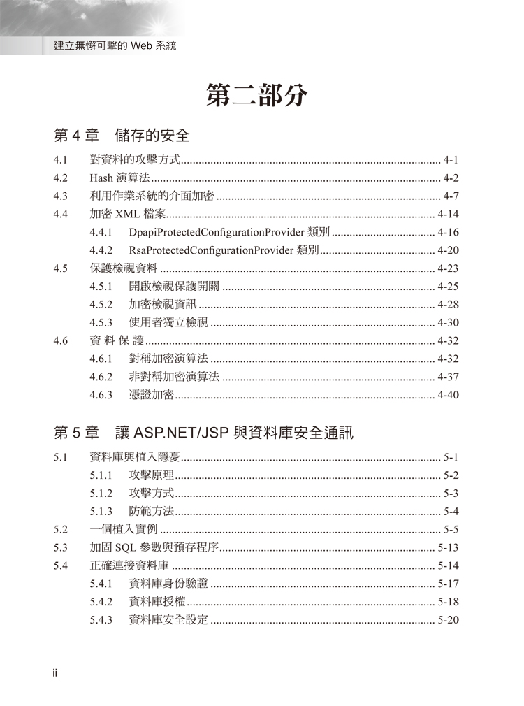 第一部分介紹了開發安全Web系統的基本概念,必須掌握的安全類庫和網站標準化安全控制項。同時讀者透過案例講解能夠更加深刻理解Web程式安全性的必要,以及自己編輯程式時應注意的一些重要環節。